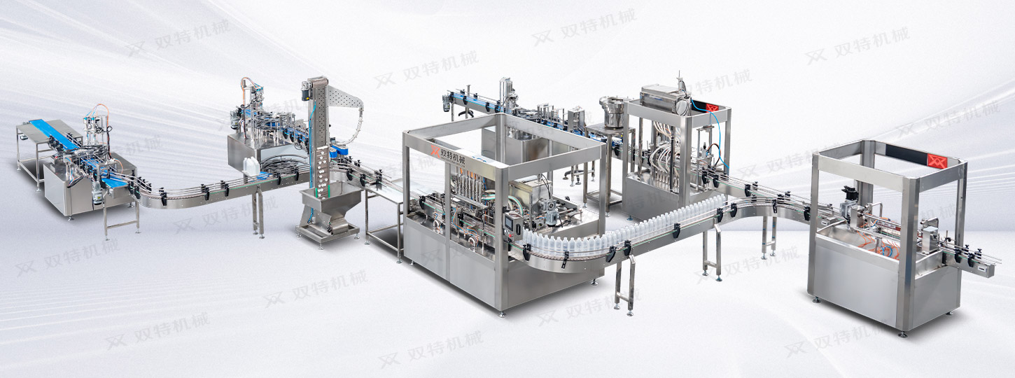 雙特機械專注于洗瓶--烘干滅菌--灌裝--真空旋蓋--巴氏殺菌--貼標(biāo)--套膜--裝箱--碼垛全系列的成套灌裝生產(chǎn)線。